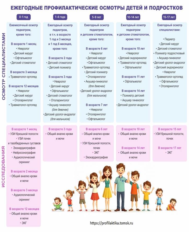 Здоровье важно поддерживать и укреплять. В этих целях детям и подросткам рекомендуется проходить профилактические осмотры и диспансеризацию для выявления заболеваний на ранних стадиях и своевременного начала лечения.